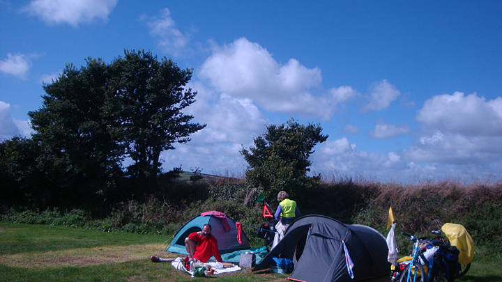 La recherche du camping est laborieuse car les personnes rencontrées ne peuvent pas nous renseigner même dans les épiceries. Apparemment le camping à Downderry indiqué sur la carte n’existe plus. Un responsable de magasin nous envoie vers un farm camp situé à 1 km de montée. Thierry essaie la montée en poussant le vélo, trop dur. On décide de continuer vers Plymouth et de nous arrêter au premier camping que nous rencontrerons
