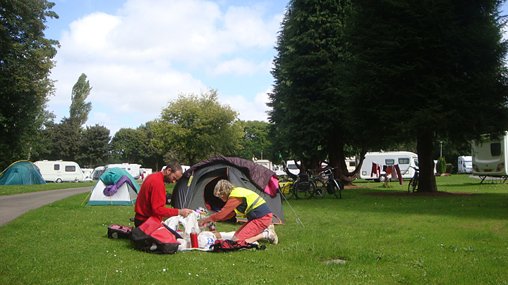 Finalement nous arrivons à un camping à 15h30 (heure anglaise) avec un vent soutenu. On se fait remarquer et l’accueil est très chaleureux. On nous offre une boisson chaude de bienvenue à prendre dans la cafétéria du camp.