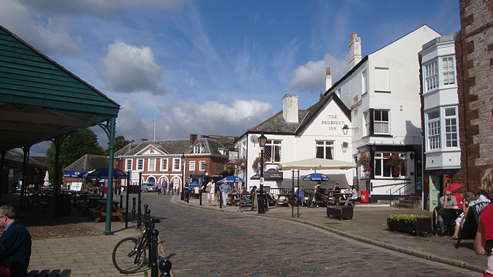 Aujourd’hui nous visitons Exeter. Un petit arrêt photo à Cockwood où une vache prend un bain de pattes au petit matin