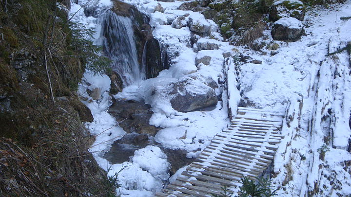 En allant au col de Saix, nous découvrons des sentiers glacés et glissant. Dans la descente, près du chalet de Théo, nous sommes accueillis par la lueur d’un gyrophare : une dame est couché sur le sol et les pompiers sont entrain de la mettre dans une coque.
