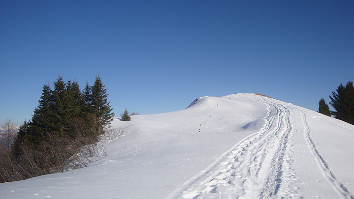 En avant pour le col de Recon 1733 m. On distingue le sentier sur la pente.