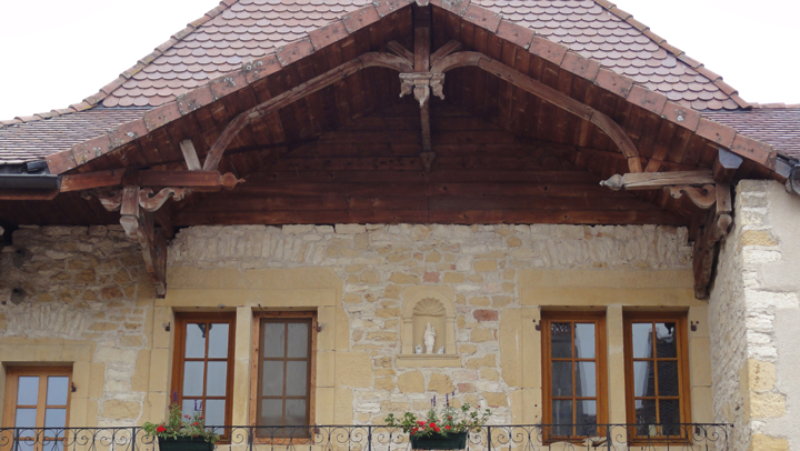 A Mièges, j’admire le travail du charpentier, un vrai artiste ! et les clients ; le « gros » paysan du coin. « Gros » mais qui a du goût à mon avis !