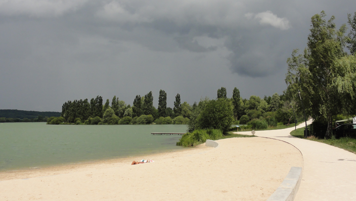 Le lac de Vaivre et son ciel hyper chargé, sa plage de sable fin