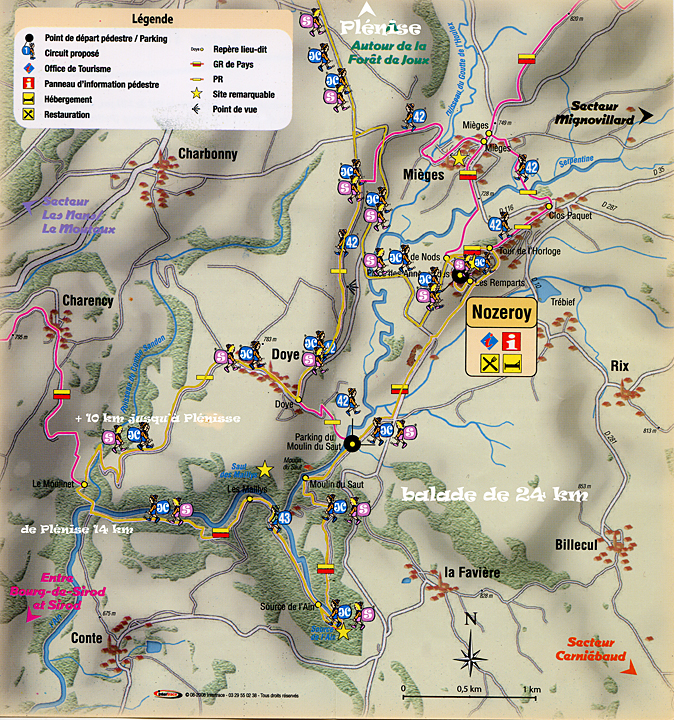 Mercredi, de la marche, nous allons à la source de l’Ain par le PR 42 et le PR 43 en partant de Plénise. Je découvre aujourd’hui que cela fait une boucle de 24 km