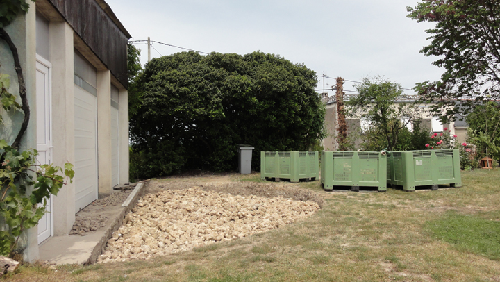 5 bennes (de Fernand) de terre plus tard, l’empierrement débute