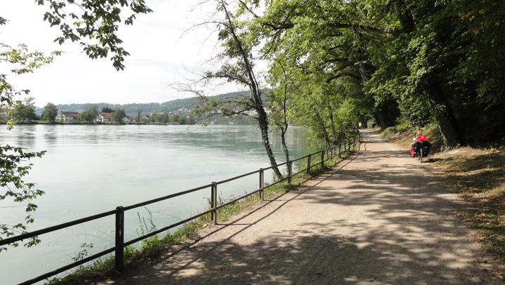 la piste cyclable le long du Rhin près de Waldshut-Tiengen