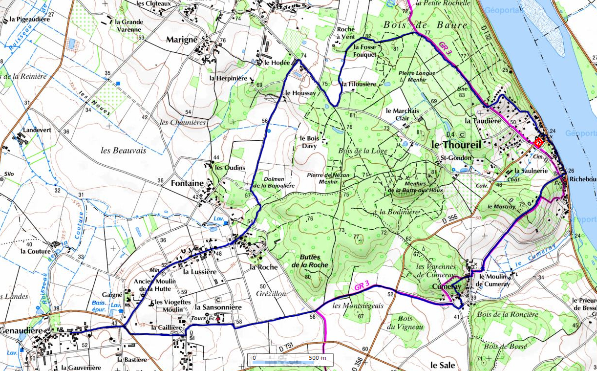 Nous avons passé le dolmen de la Bajoulière et nous allons entrer à La Roche. A noter que l’imper a disparu !