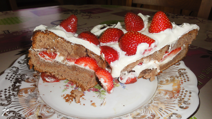 La moitié pour la prof et l’autre moitié pour l’élève, notre portion ne fait pas long feu, car une forêt noire aux fraises est un vrai délice