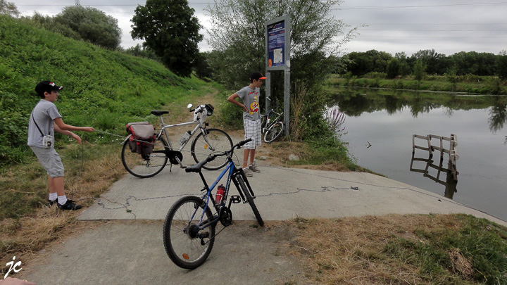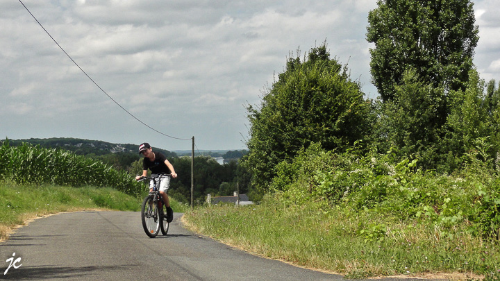 Le facteur ayant ramené le chèque des ray bans, nous partons, après la sieste de mamie, tous les 4 à la poste de Gennes. Nous empruntons le trajet le long de la Loire. Tandis que mamie prend la route habituel, Antoine Théo et papi passons par Bessé.