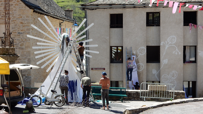 14h 10 nous entamons la descente vers Pont de Montvert, quelques gros nuages font parasol, le village est éclairé par le spot solaire, notre scène jusqu’à demain