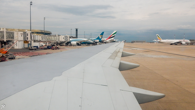 Comme souvent, Simone a choisi Daumin comme agence de voyage. Nous déposons la voiture dans leur garage à La Flèche, puis il nous convoie à Roissy Charles De Gaulle. Le rendez-vous est fixé pour midi, le taxi Matthieu doit nous prendre en charge.
