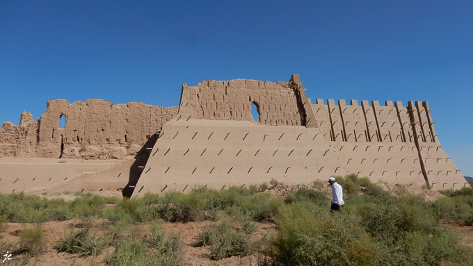 Prochaine étape, la forteresse de Kyzyl Kala à environ 3 km, les restaurations en cours mettent en valeur cet édifice construit en briques de terre crue