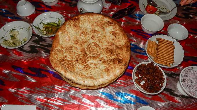 le premier repas ouzbek sous la yourte, un dépaysement !