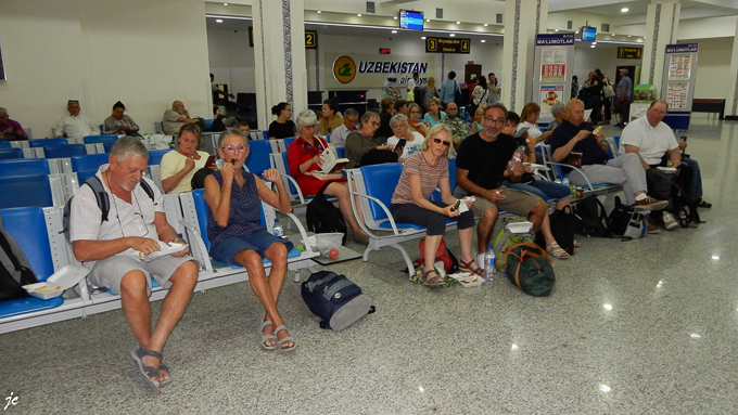 Retour vers Ourguentch pour le dîner, un pique nique, dans l’aérogare en attendant le vol intérieur vers Boukhara