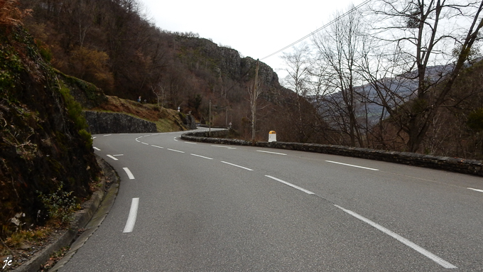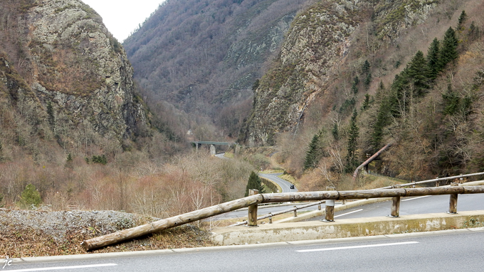 après environ 3 km, la voie verte est barrée et fermée par arrêté préfectoral, j’en profite pour une photo des lacets : la nouvelle route depuis 2013