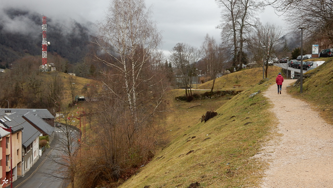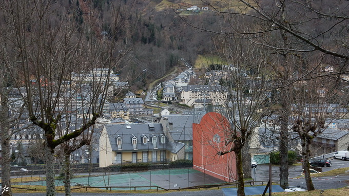L’après midi, nous explorons la ville du côté des thermes. Nous empruntons la voie verte d’où nous apercevons sous un autre angle, la ferme Igau au belvédère d’Aoumède et le massif du pic de Cabaliros en arrière plan
