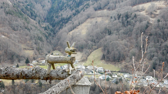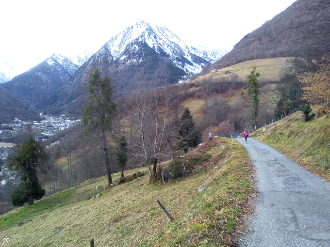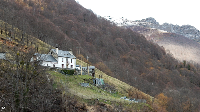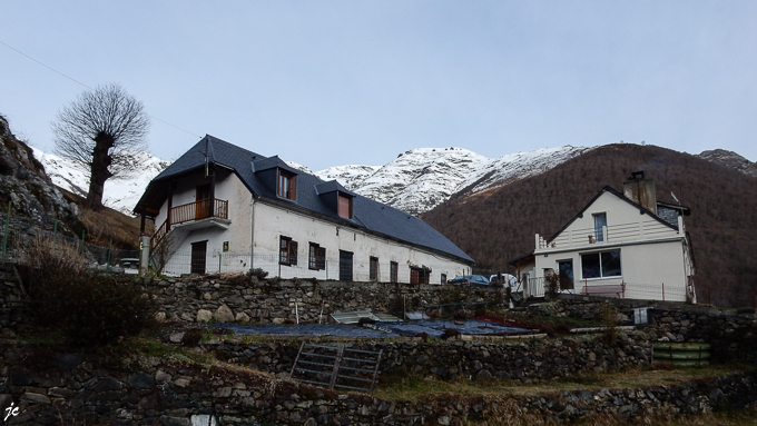 tout en haut de la photo, la ferme basque, dessous le gave de Cambasque et le sentier emprunté hier mercredi 29 janvier