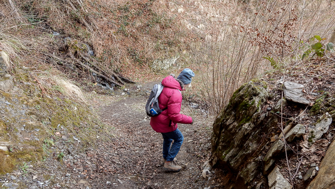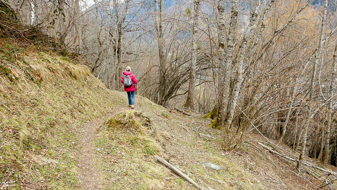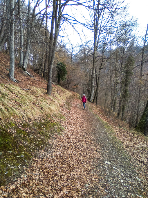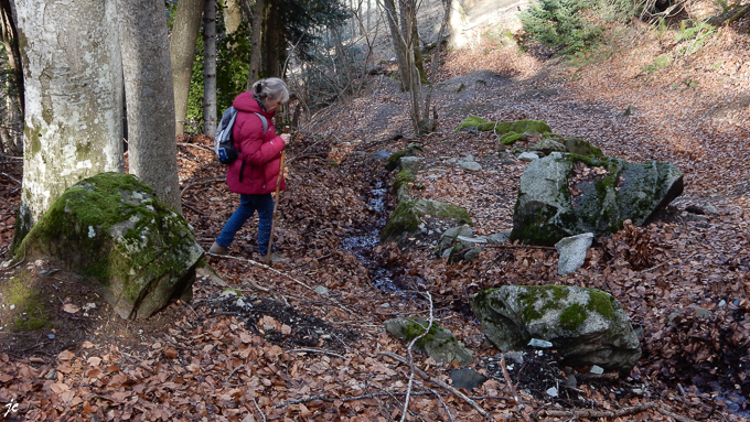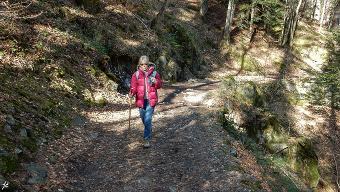 Simone toujours concentrée sur le sentier, nous n’avons plus vingt ans gare aux foulures