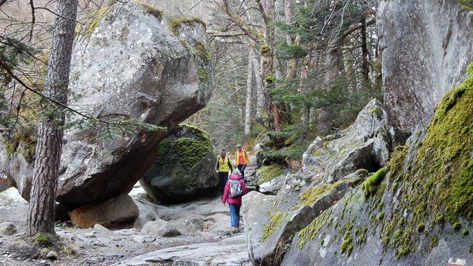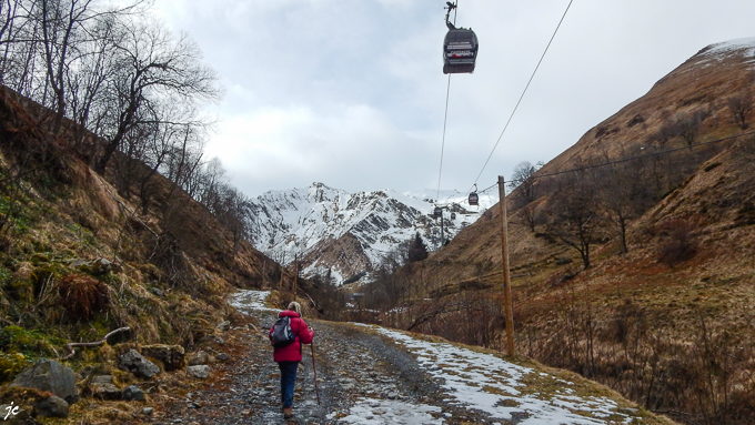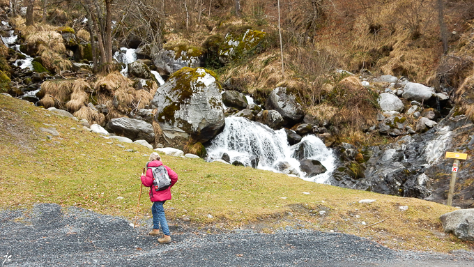 L’après midi, départ à 12h vers le Pont d’Espagne, le sentier est verglacé et dangereux d’après l’office du tourisme ! on verra bien, quitte à faire demi-tour. Finalement le sentier est praticable jusqu’à 100 m avant le pont et la cascade du pas de l’Ours soit 13,2 km aller-retour. Tous les randonneurs rencontrés confirment que le Pont d’Espagne est inaccessible par le sentier, trop dangereux au delà du pont du Pas de l’Ours.