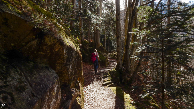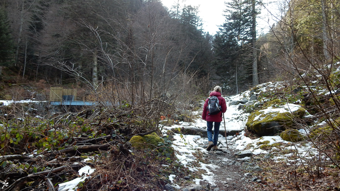 le retour, nous n’allons pas jusqu’au pont du Pas de l’Ours, le sentier étroit est couvert de neige verglacée