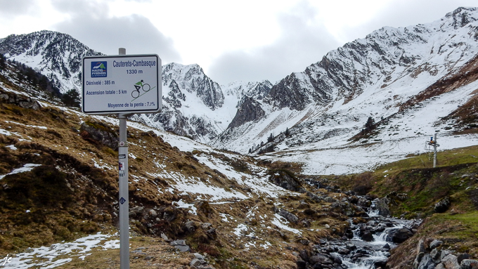 l’après-midi : Cambasque, le trajet aller 4,4 km et 463 m de dénivelé. Nous démarrons la montée après le pont du gave de Cambasque à 976 m d’altitude et 300 m plus loin nous atteignons l’altitude de 1280 m avec des pentes de 27 % d’après RouteYou