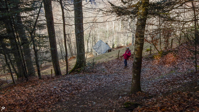 Nous passons à proximité de la ferme Basque sans nous laisser perturber, fascinés par le torrent et la petite cascade