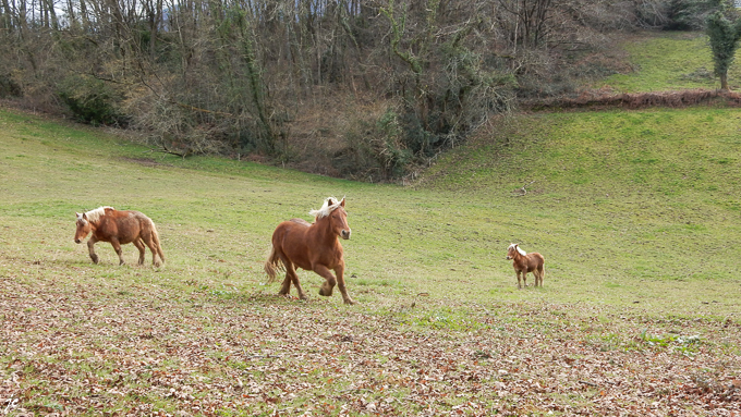 Fougueux, les chevaux dans le pâturage entre les lieu-dits Mirandou et Pratt à Montaut
