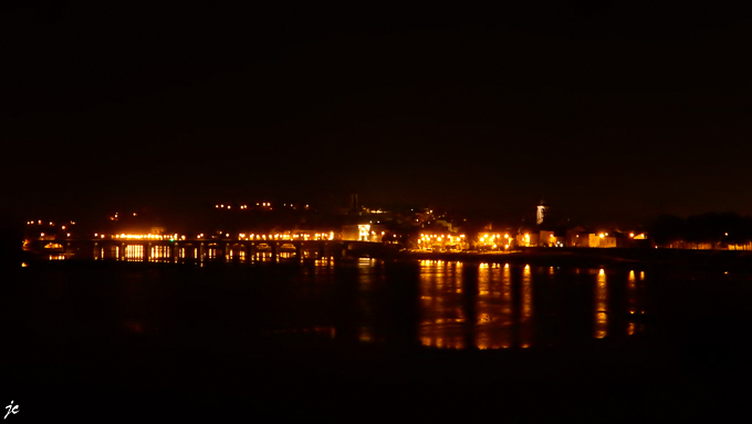 Sur le pont du Cadre Noir à 6h10, la vue sur la ville et la Loire, Saumur « by night » se mire dans la Loire, étincelle de tous ses feux