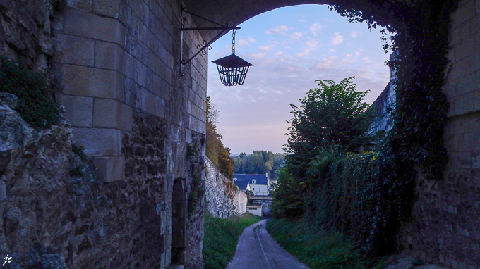 De retour à Montsoreau, je grimpe la rue Jehanne d’Arc pour une photo du château côté pile