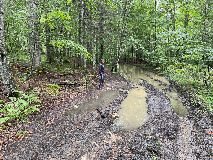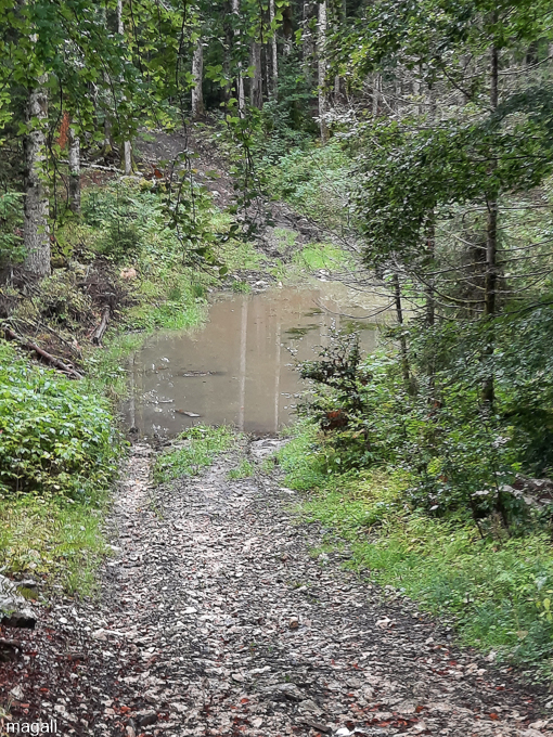 le seul passage possible passer dans la forêt au dessus du chemin, la mare est immense !