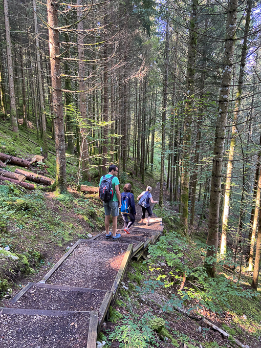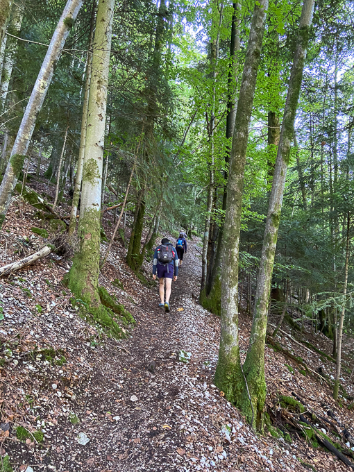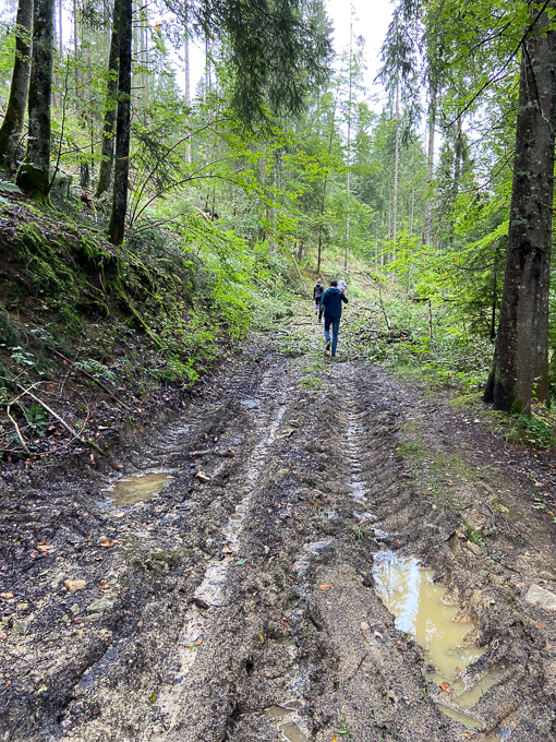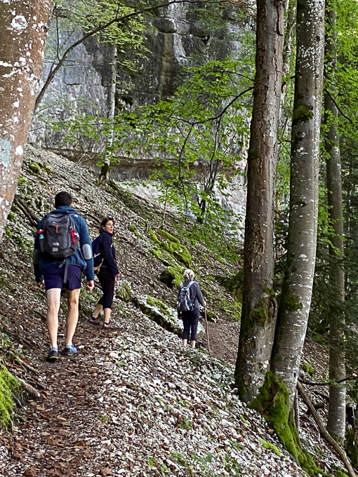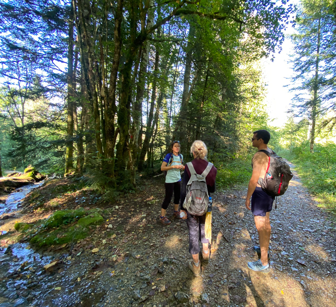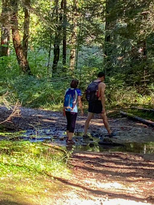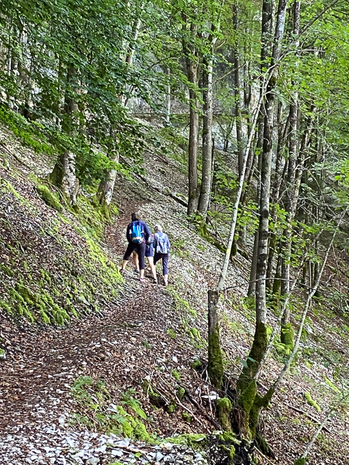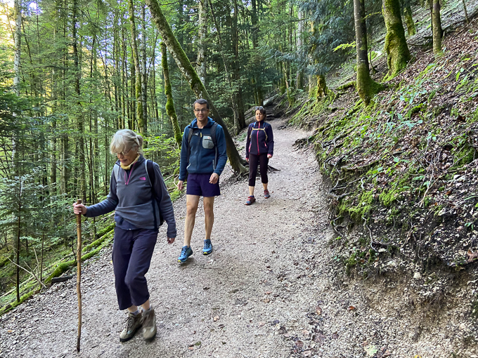 Le sentier (le GR5) nous emmène dans la vallée de la Cébriot puis remonte dans la forêt de la Roche. Assez aventureux par endroit, les précipitations de la veille ont inondé les chemins