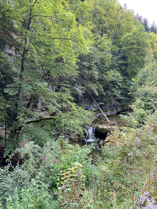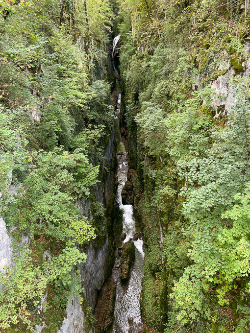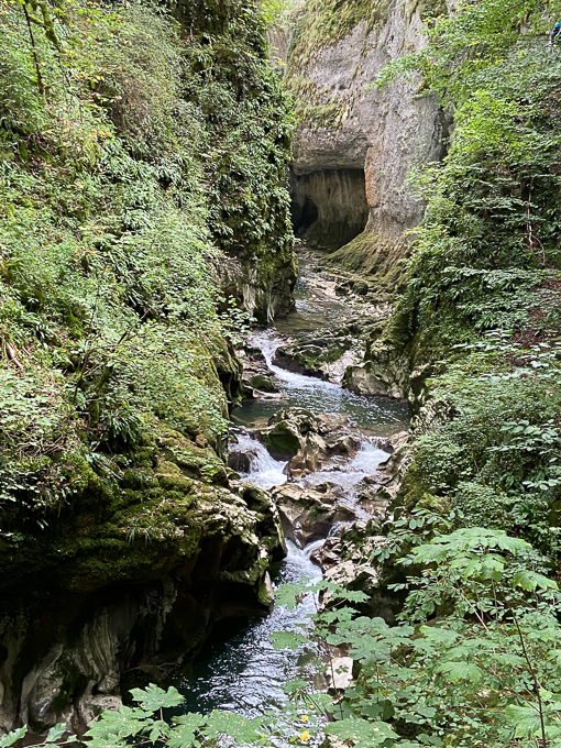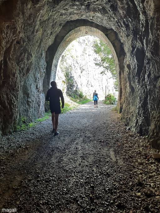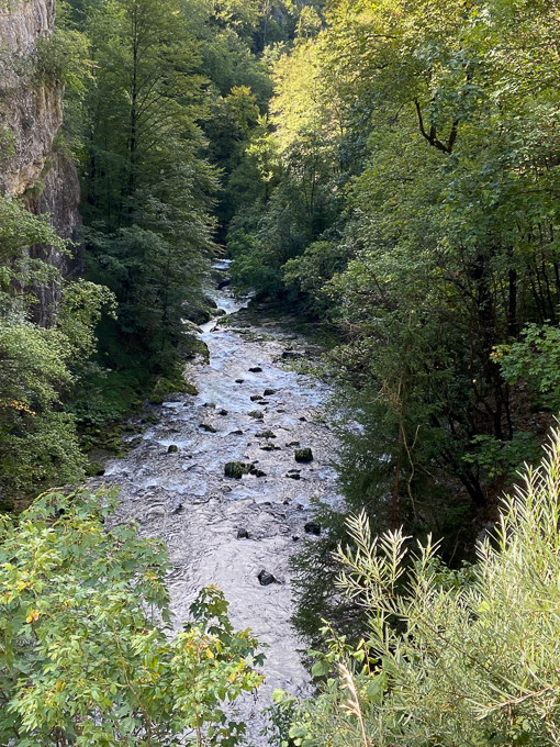 A la sortie du tunnel, le canyon s’est rétréci, la Saine n’est pas visible, trop de végétation mais nous entendons les rapides