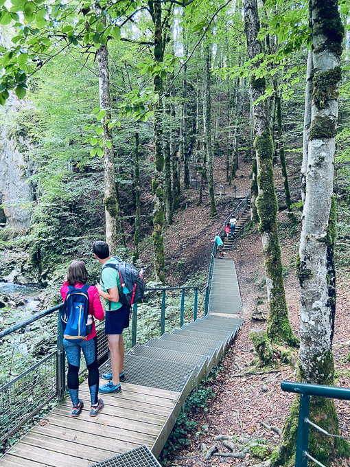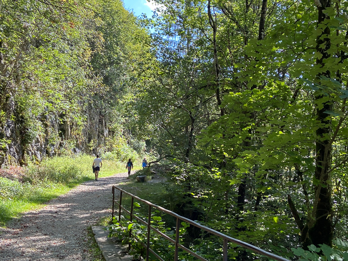 Nous laissons nos vélos sur le parking (alt 698m) et empruntons le sentier aménagé des gorges, il y a foule