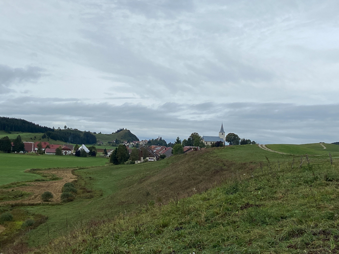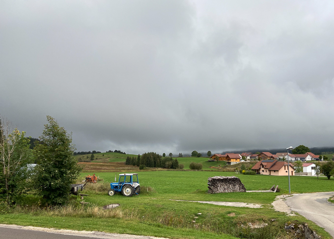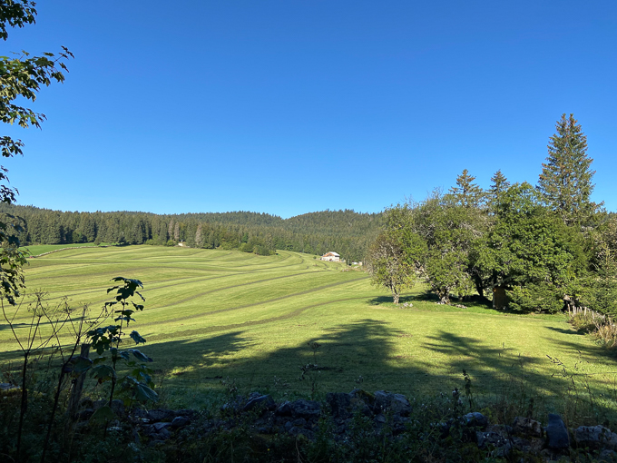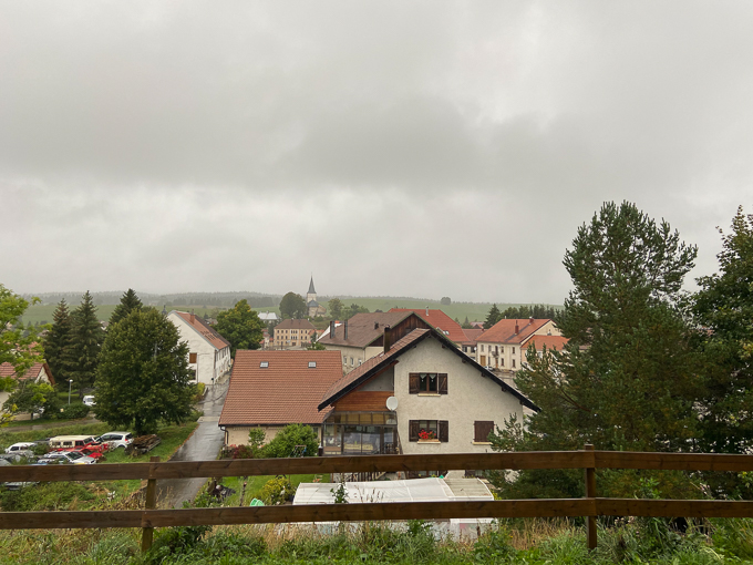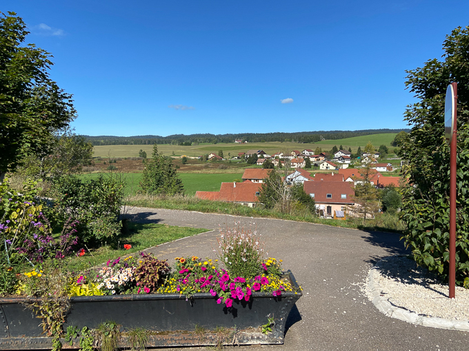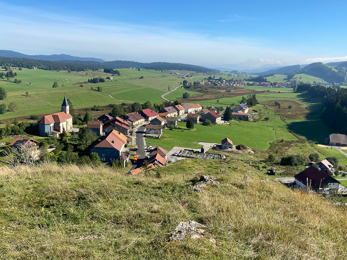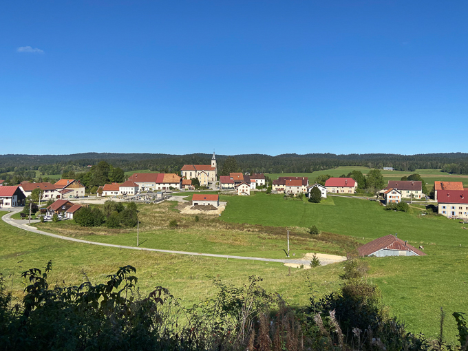 Il est 11h 30 lorsque nous débouchons de la forêt au dessus de Chaux Neuve et la vue directe sur le village, l’estomac crie famine !