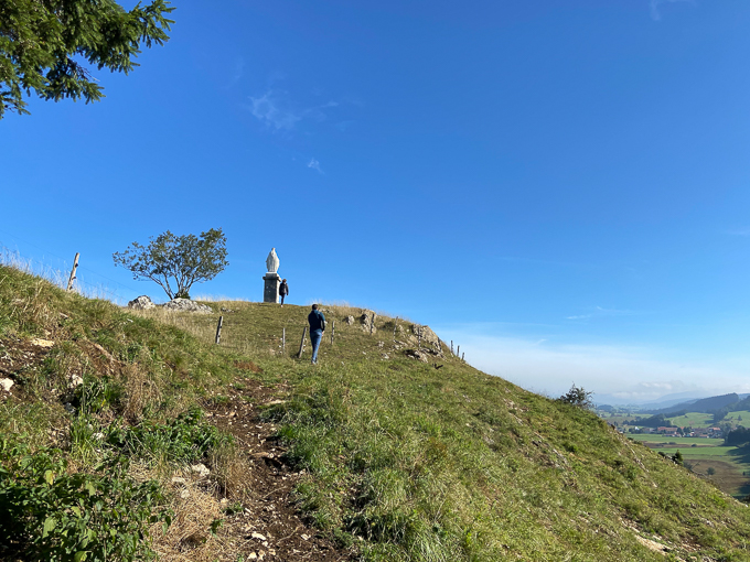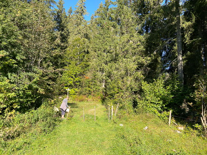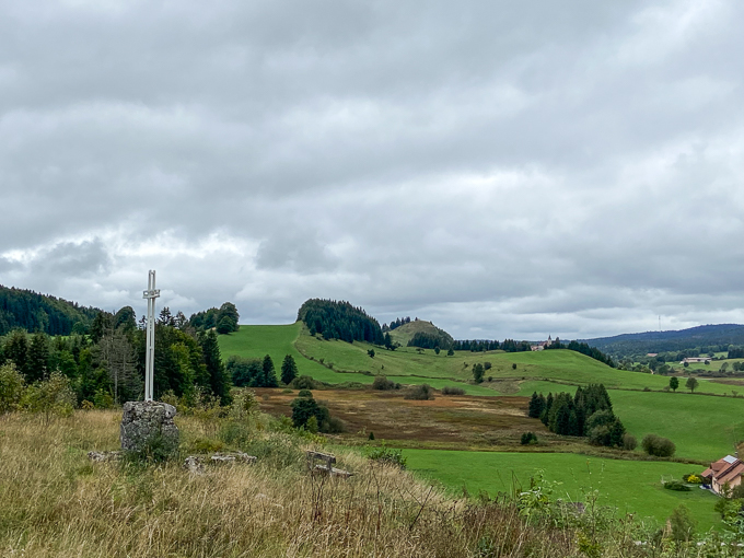 Avec Magali, je fais un petit crochet jusqu’à la croix, elle est visible du gîte par la baie du coin salle à manger
