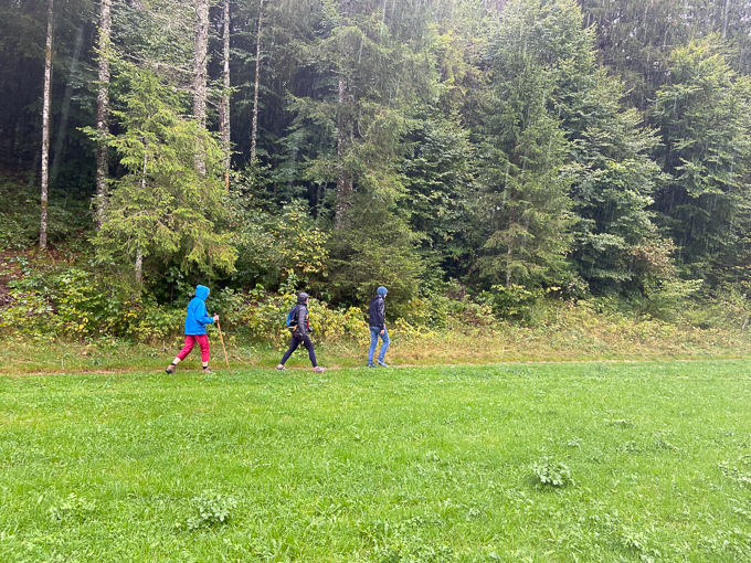 Nous sommes trempés en arrivant au chalet.