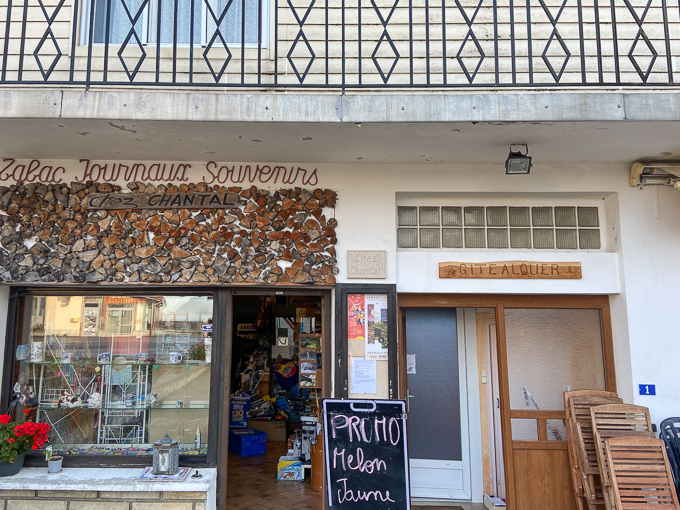 Vers les 18h Cyril propose de nous aérer et nous ressortons direction l’épicerie, passons devant la mairie en suivant le balisage blanc/rouge des sentiers de grandes randonnées