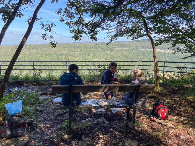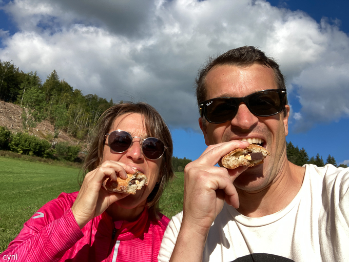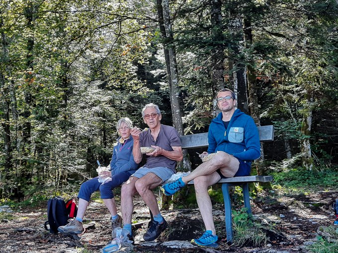 Pas de table de pique-nique mais un banc, nous nous installons et sortons les victuailles