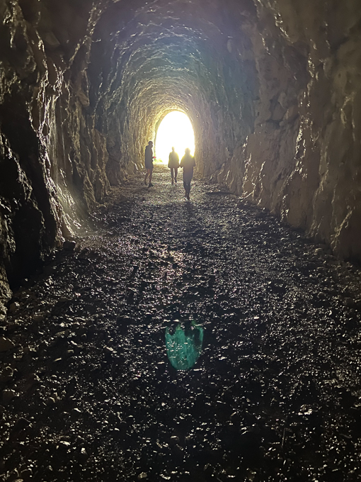 Nous décidons de retourner, cette fois ci le tunnel est illuminé sur une bonne profondeur par la lumière rasante du soleil