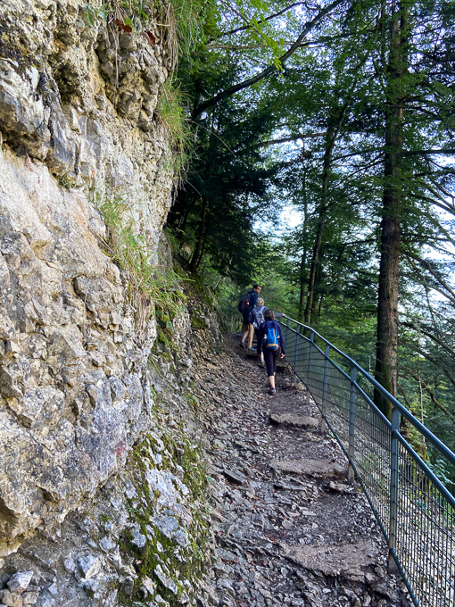 le sentier est accroché à la falaise, il est étroit et escarpé