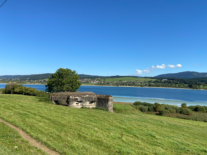 sur la D46, le lac de Remoray et le blockhaus vestige de la dernière guerre