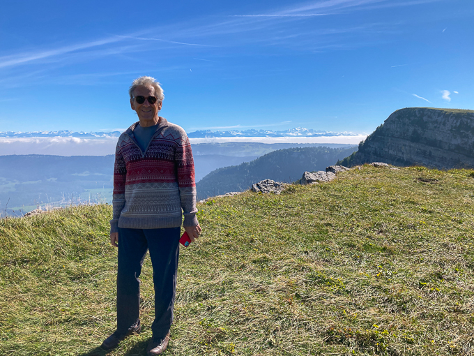 Cyril, Simone, Jean-Claude et Magali au Mont d’Or avec le Mont Blanc en toile de fond