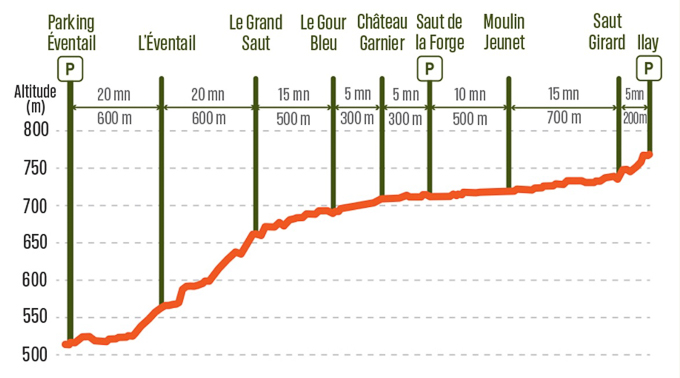 En démarrant du parking du saut Girard, nous découvrons les cascades du point le plus haut au point le plus bas.