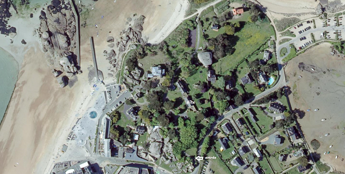 et toujours la maison de villégiature dite Ker-ar-Vir, datant de la fin du 19ème siècle, à la pointe de la flèche, la façade côté mer