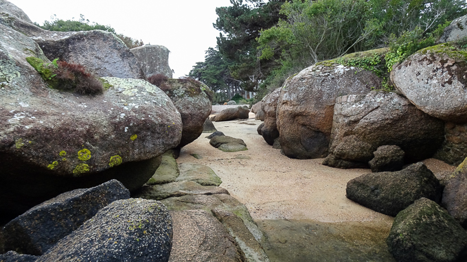 Nous continuons jusqu’à la baie de Kerlavos, l’heure avance ! Nous faisons demi-tour et prenons la direction du bourg de Trégastel
