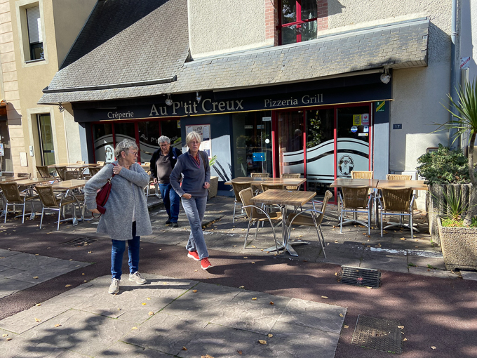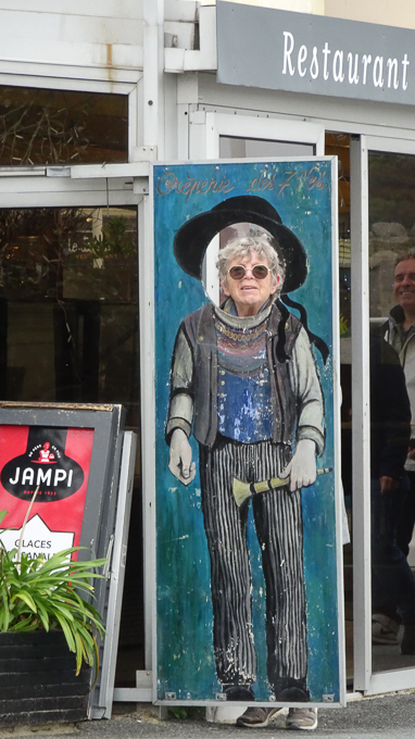 La visite des boutiques est incontournable, devant l’une d’elle, le breton prend la pose et ce n’est pas du pipeau, Gisèle d’un pas décidé, téléphone en main court pour le prendre en photo