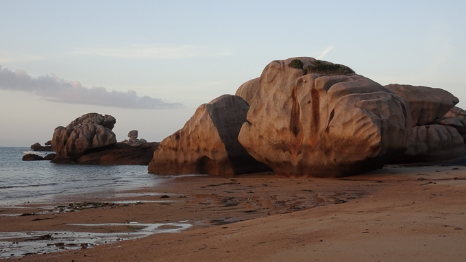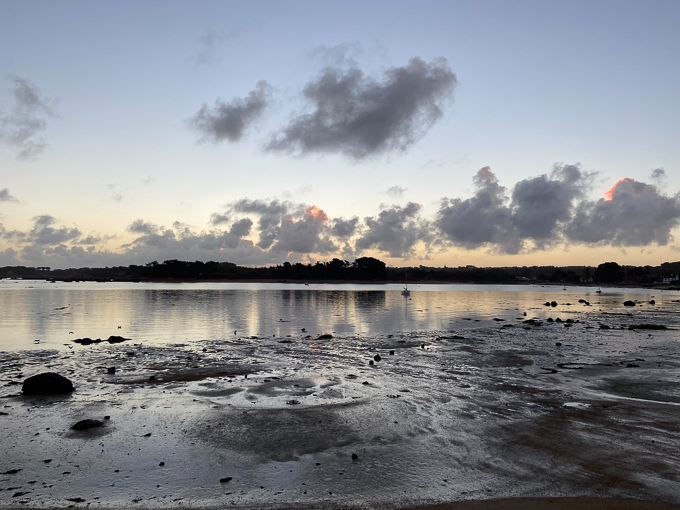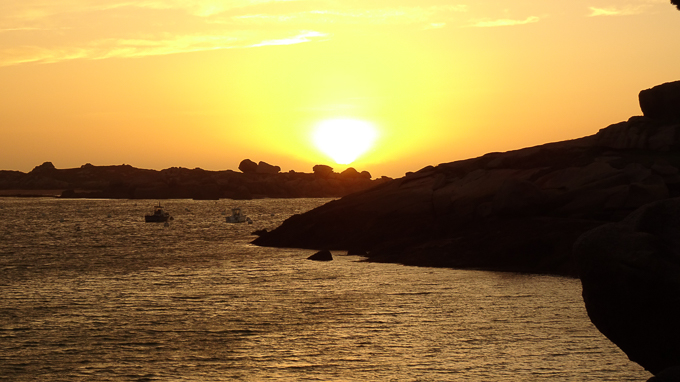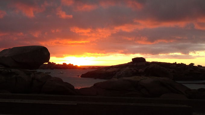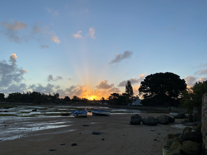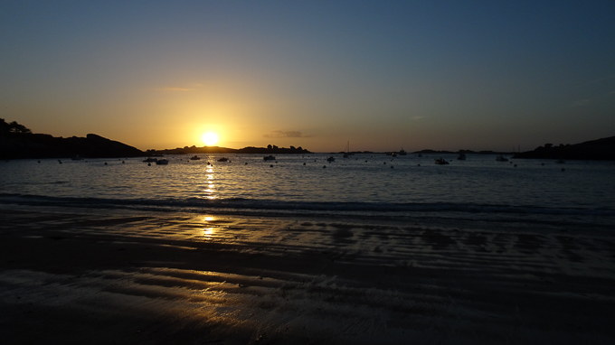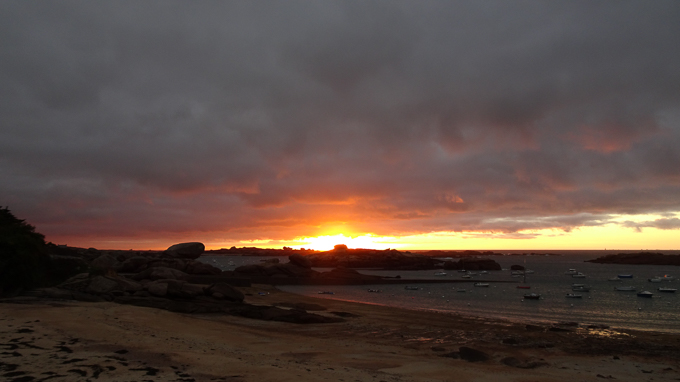 Après le repas du soir, je ressors sur la plage du Coz-Pors, guetter le coucher de soleil