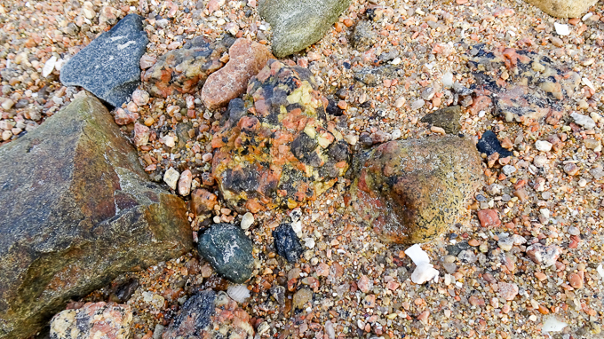 un constat, les graviers sur l’estran ne sont pas forcément roses sur la côte de granit rose