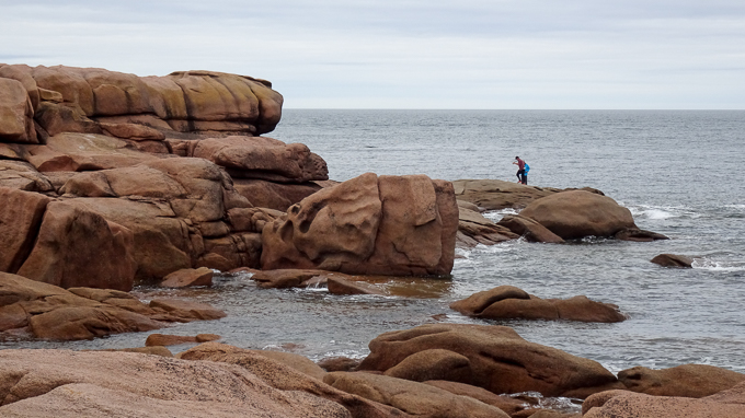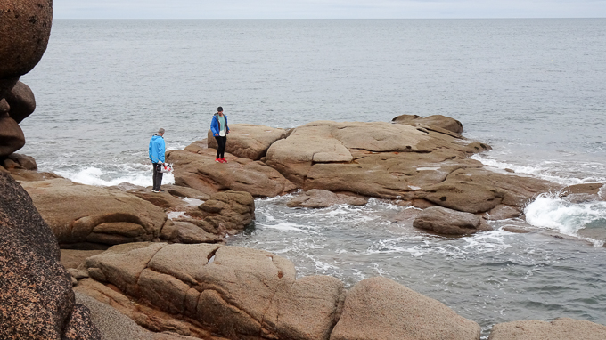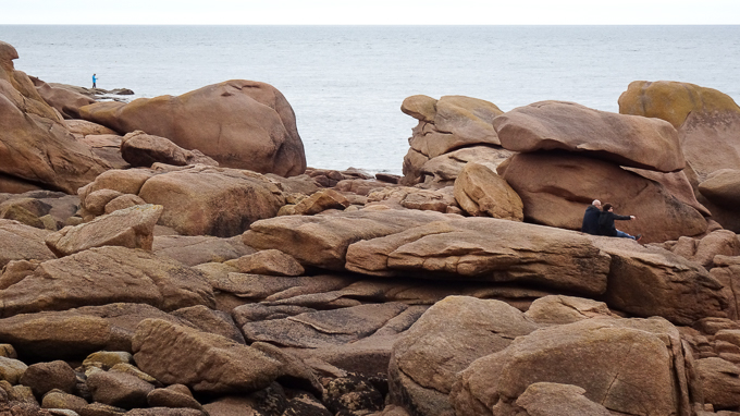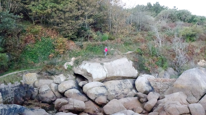 nous continuons vers l’île Renote, Gisèle sur le GR34, Simone et François font une petite incursion sur l’estran