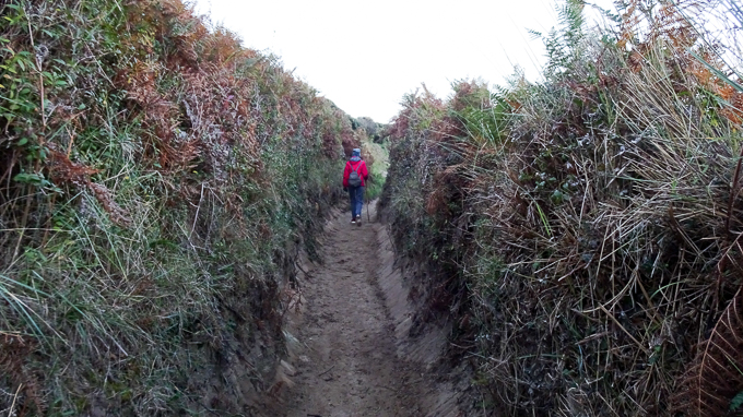 avant de descendre sur la plage, le sentier se mue en tranchée